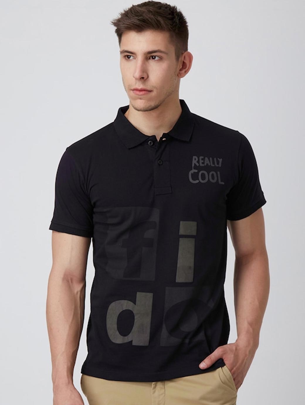 Men Black Printed Polo Collar Slim Fit T-shirt